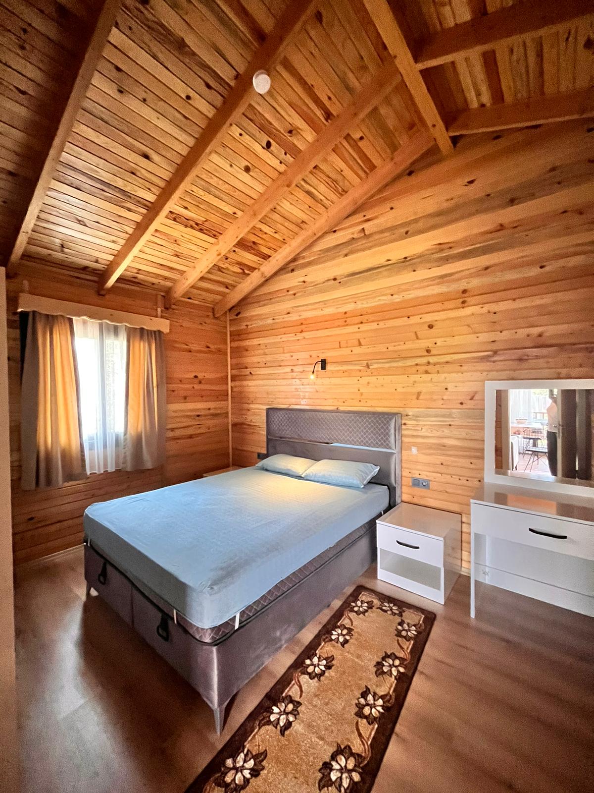 Olympos’ta unutulmaz bir tatil için köy evi konaklama hizmetimiz, doğal güzelliklerle çevrili huzurlu bir ortam sunuyor. Olympos’un benzersiz doğasında, konforlu ve şık bir köy evi sizi bekliyor. Ahşap malzemelerle inşa edilmiş olan evimiz, hem modern rahatlığı hem de doğal dokusuyla dikkat çekiyor. Nar ve zeytin bahçeleri arasında yer alan bu özel köy evi, size ve ailenize dinginlik ve mahremiyet sağlıyor.